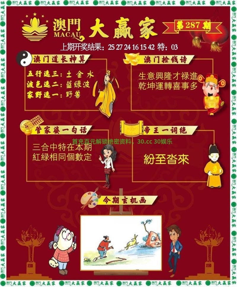 286期:绝杀半波╠绿双╣开:兔03准 |