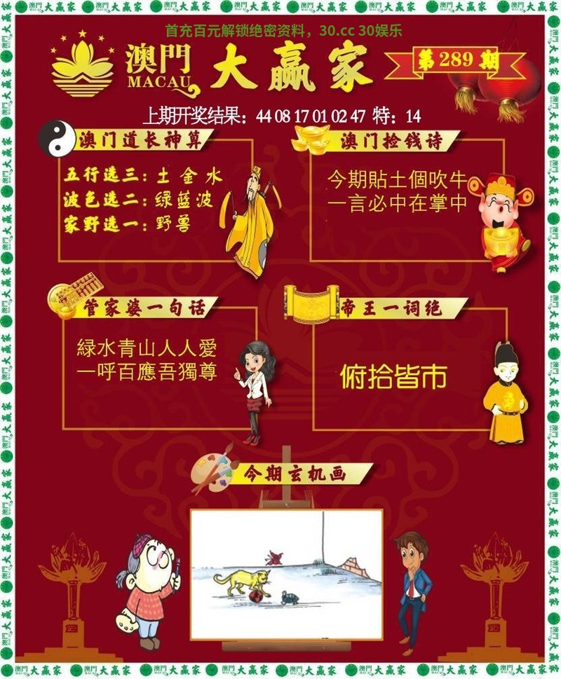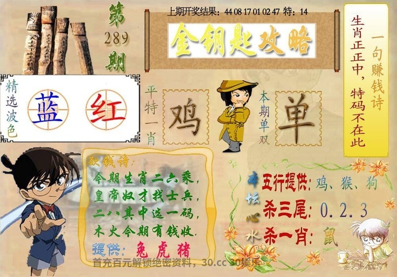 289期:三行生肖╠金水土╣开:鼠42准 |